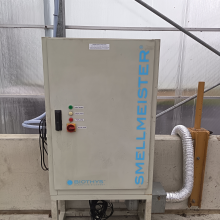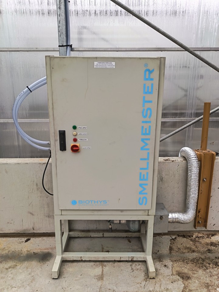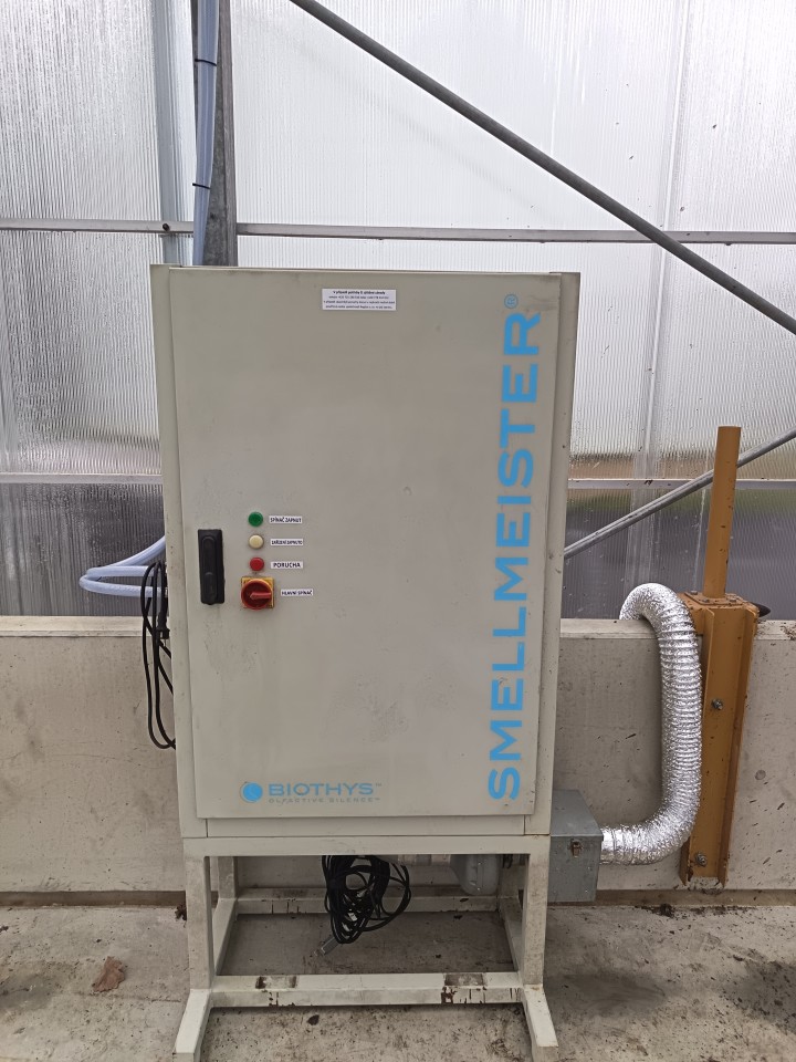 Redukce zápachu bude zajištěna pomocí 2 zařízení Smellmeister G36, z nichž každé je určeno pro jednu halu. Z těchto zařízení vedou perforované hadice rozvedené po konstrukcích v úrovni stávajících ventilátorů. Z těchto hadic se budou konstantně uvolňovat aktivní látky, které eliminují uvolňované pachové látky z kalů. Technologie bude v provozu během měsíců s trvalou teplotou nad 5 °C.